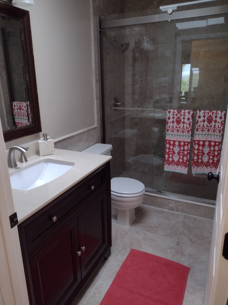 For custom bathrooms, we do custom tile showers, or we can install a pre-fabricated shower or tub. We can do simple mirror installs or custom mirror setups designed to your liking. We can install pre-fabricated vanities or make you a custom vanity that’s the perfect size for your bathroom.